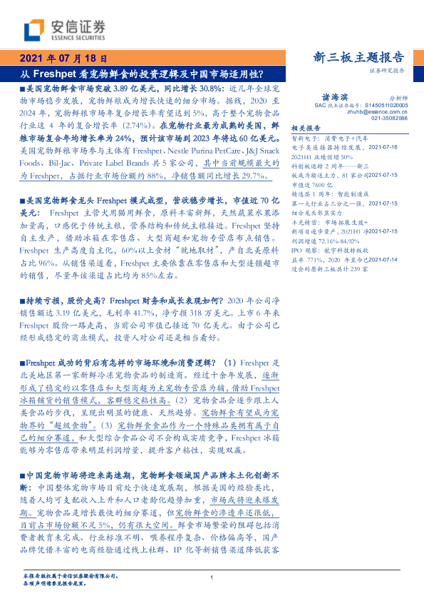 【安信证券】【20210718】新三板主题报告:从Freshpet看宠物鲜食的投资逻辑及中国市场适用性?-23页