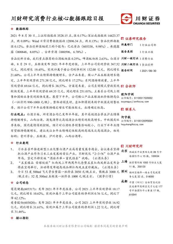 【川财证券】【20210830】消费行业核心数据跟踪日报-4页