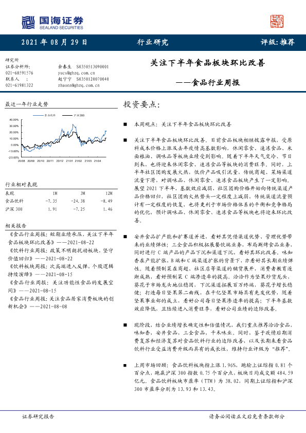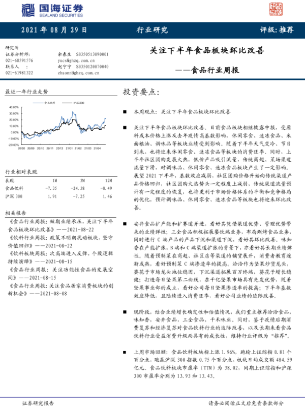 【国海证券】【20210829】食品行业周报:关注下半年食品板块环比改善-16页