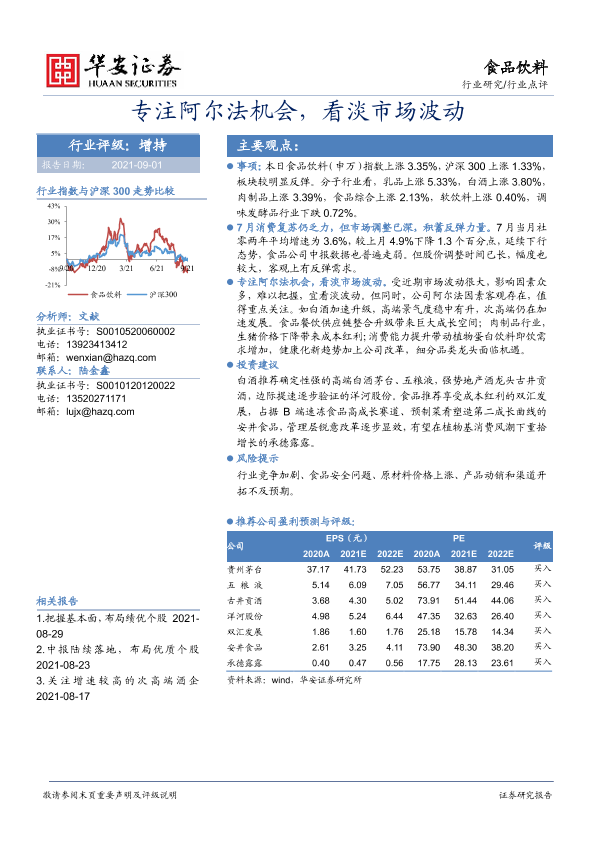 【华安证券】【20210901】20210901-华安证券-食品饮料行业点评:专注阿尔法机会,看淡市场波动-2页