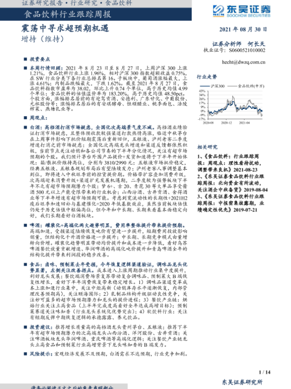 【东吴证券】【20210830】食品饮料行业跟踪周报:震荡中寻求超预期机遇-14页
