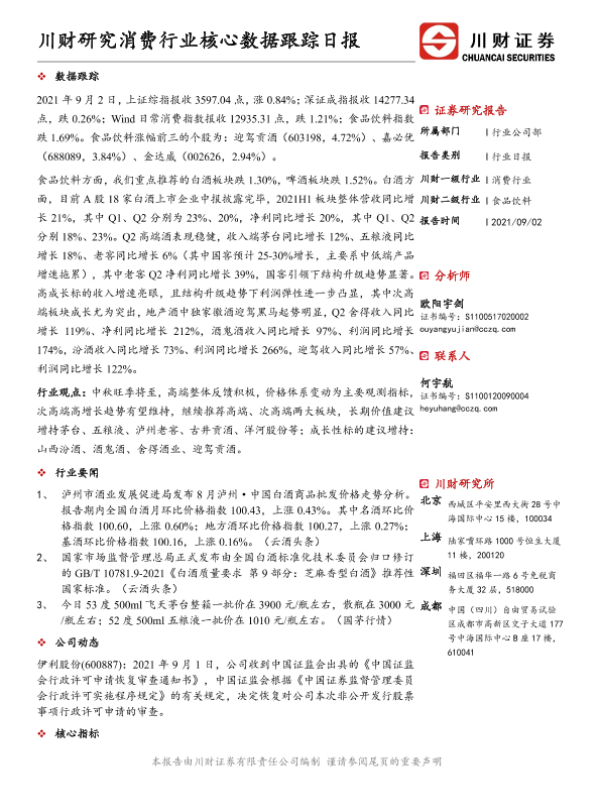 【川财证券】【20210902】川财研究消费行业核心数据跟踪日报-4页