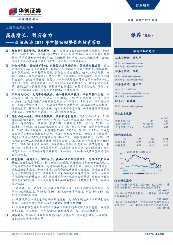 【华创证券】【20210904】白酒板块2021年中报回顾暨最新投资策略:高质增长,留有余力-14页