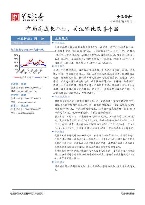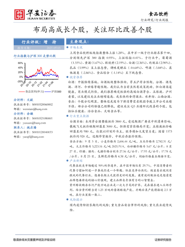 【华安证券】【20210905】20210905-华安证券-食品饮料行业周报:布局高成长个股,关注环比改善个股-24页