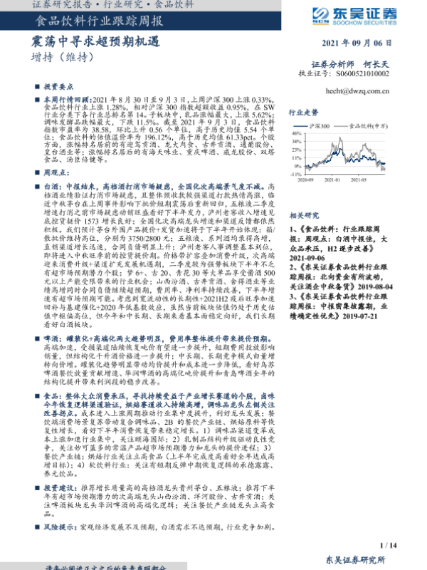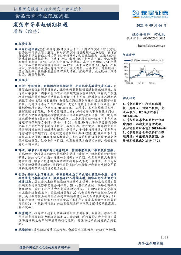 【东吴证券】【20210906】食品饮料行业跟踪周报:震荡中寻求超预期机遇-14页