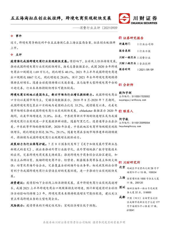 【川财证券】【20210909】五五海淘拟在创业板挂牌,跨境电商实现较快发展-2页
