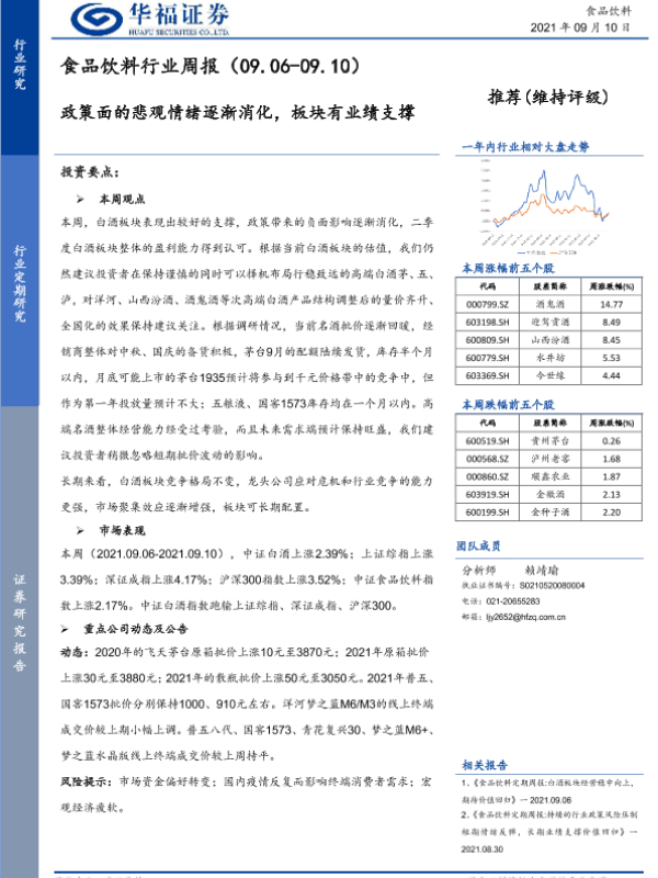 【华福证券】【20210910】食品饮料行业周报:政策面的悲观情绪逐渐消化,板块有业绩支撑-7页