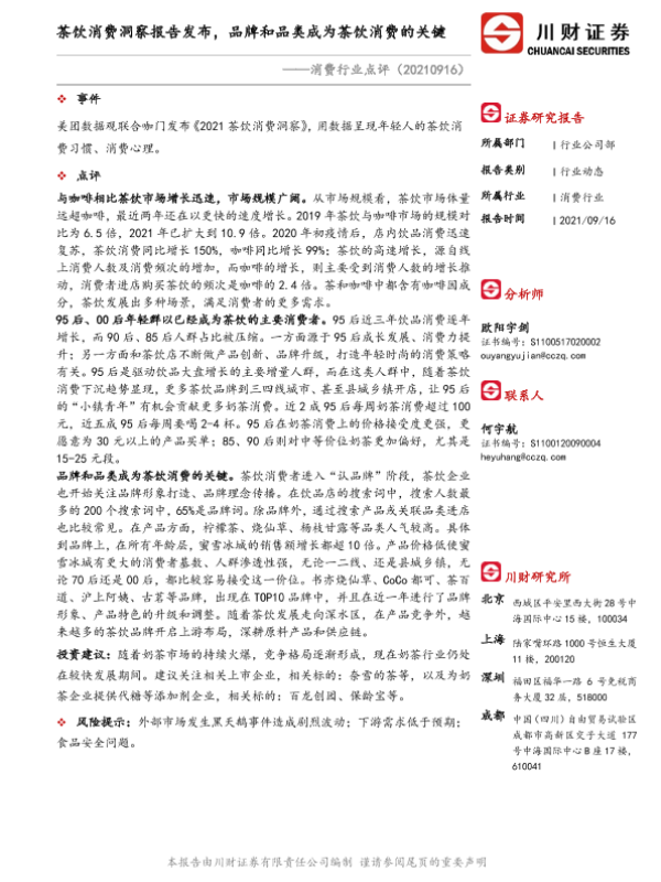 【川财证券】【20210916】消费行业点评:茶饮消费洞察报告发布,品牌和品类成为茶饮消费的关键-2页
