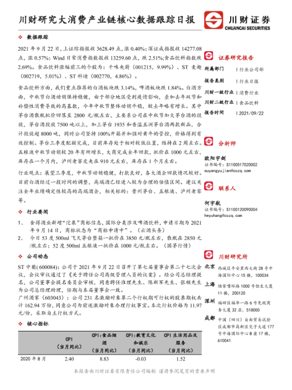 【川财证券】【20210922】川财研究大消费产业链核心数据跟踪日报-4页
