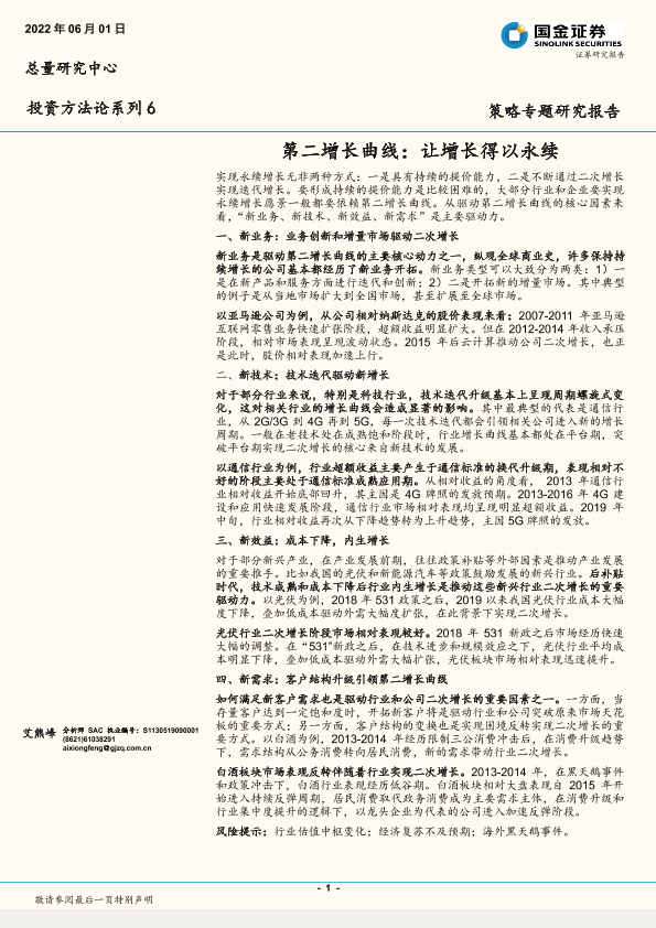 【国金证券】【20220601】投资方法论系列6:第二增长曲线,让增长得以永续-16页