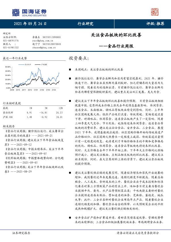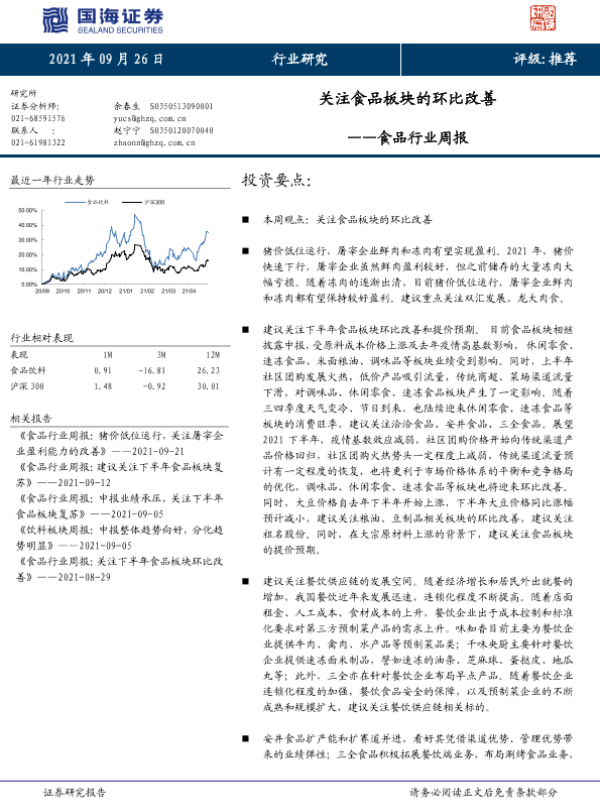 【国海证券】【20210926】食品行业周报:关注食品板块的环比改善-17页