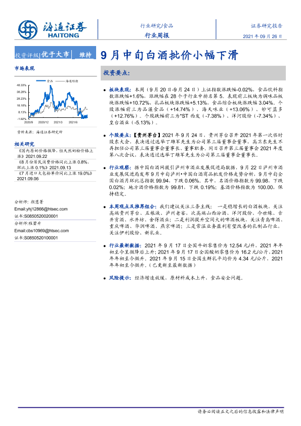 【海通证券】【20210926】20210926-海通证券-食品行业周报:9月中旬白酒批价小幅下滑-7页