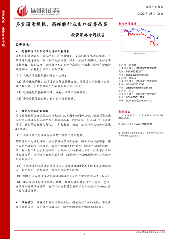 【国联证券】【20220602】投资策略专题报告:多重因素提振,高耗能行业出口优势凸显-17页