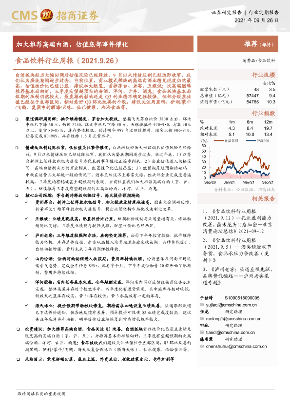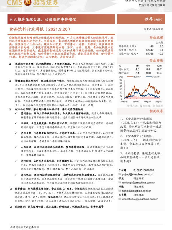 【海通证券】【20210926】食品饮料行业周报:加大推荐高端白酒,估值底部事件催化-7页
