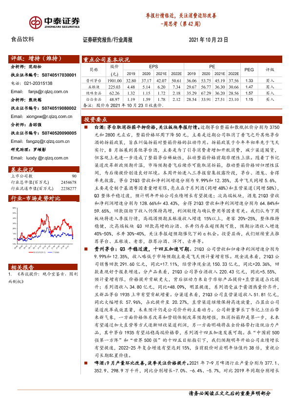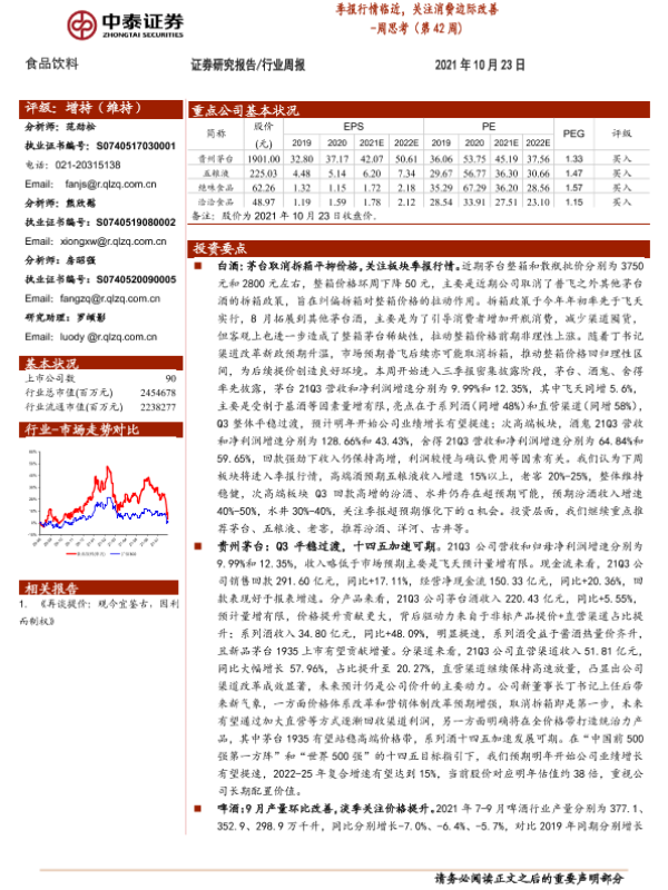 【中泰证券】【20211023】食品饮料周思考(第42周):季报行情临近,关注消费边际改善-8页