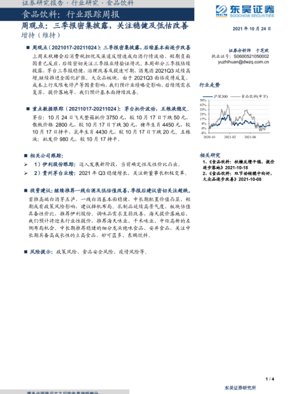 【东吴证券】【20211024】食品饮料行业跟踪周报:三季报密集披露,关注稳健及低估改善-4页
