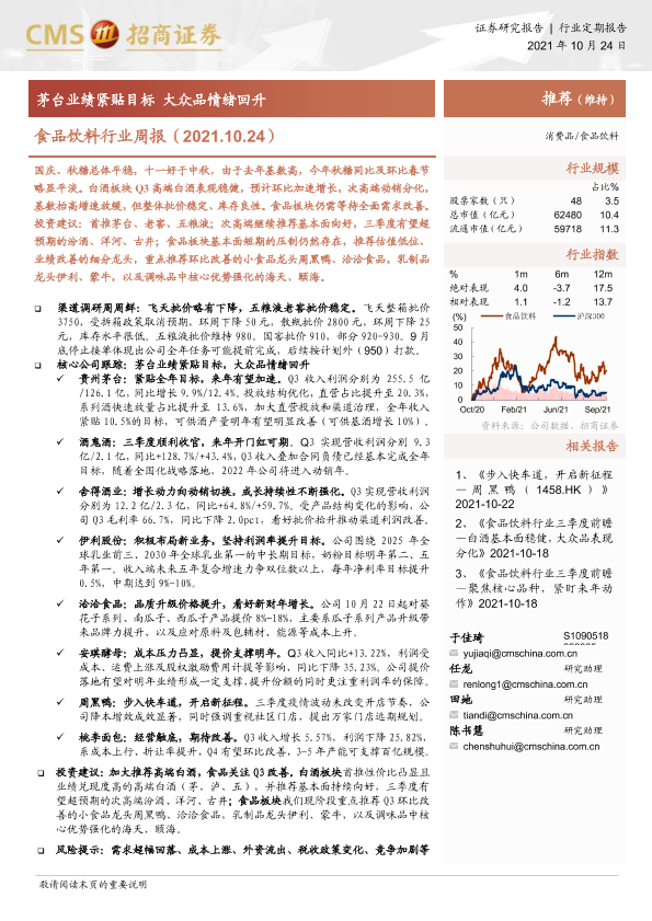 【海通证券】【20211024】食品饮料行业周报:茅台业绩紧贴目标 大众品情绪回升-8页