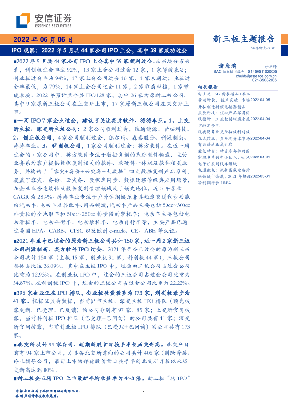 【安信证券】【20220606】新三板主题报告:IPO观察,2022年5月共44家公司IPO上会,其中39家成功过会-24页