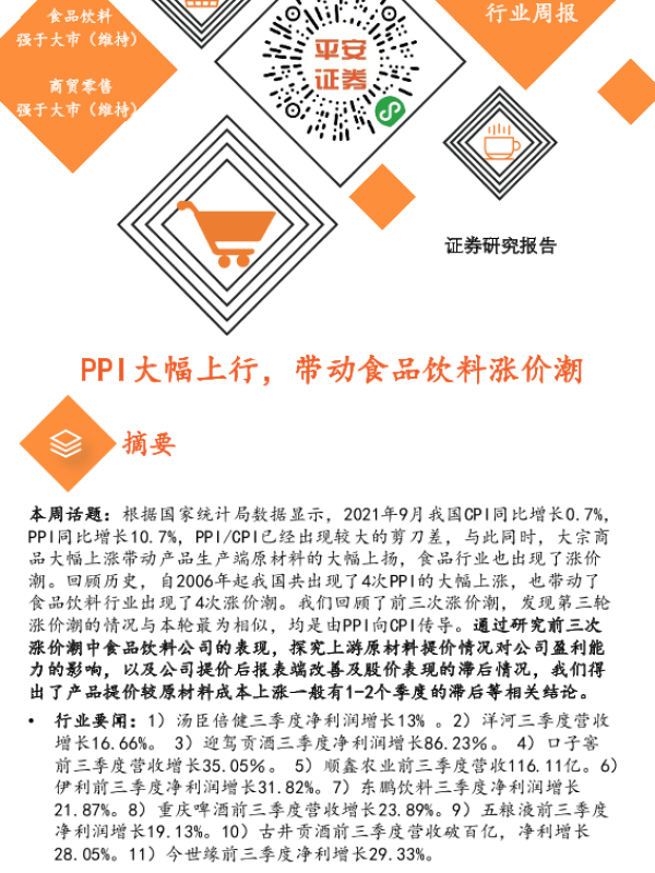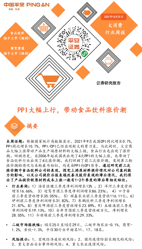 【平安证券】【20211031】20211031-平安证券-大消费行业周报:PPI大幅上行,带动食品饮料涨价潮-7页