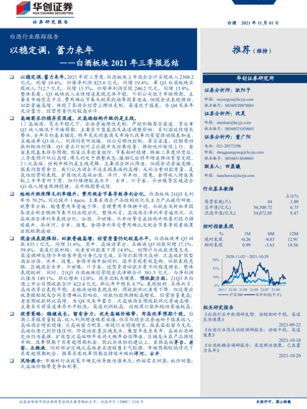 【华创证券】【20211101】白酒板块2021年三季报总结:以稳定调,蓄力来年-15页