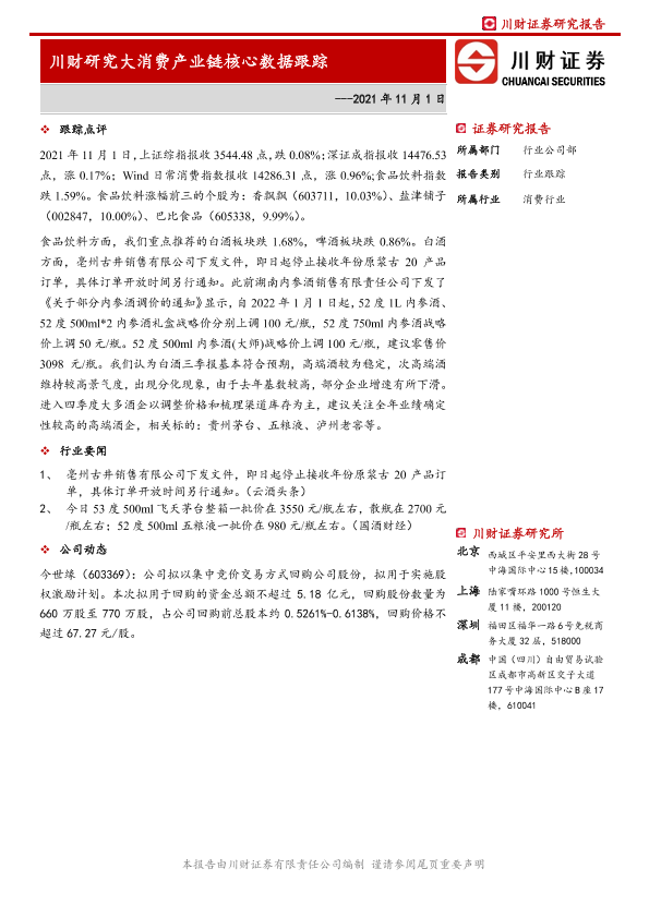 【川财证券】【20211101】川财研究大消费产业链核心数据跟踪-6页