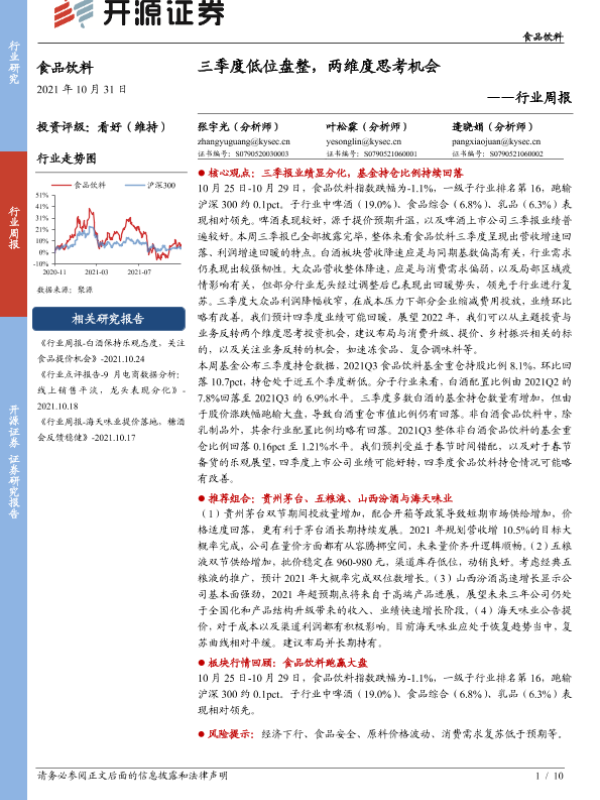 【开源证券】【20211031】20211031-开源证券-食品饮料行业周报:三季度低位盘整,两维度思考机会-10页