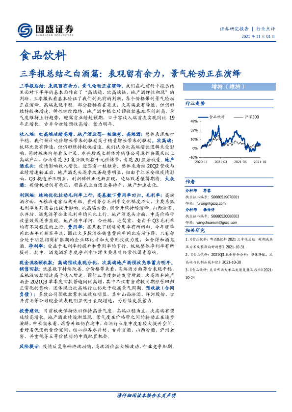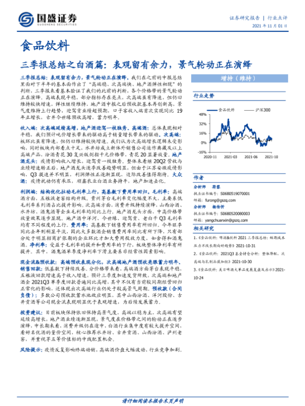 【国盛证券】【20211101】食品饮料行业三季报总结之白酒篇:表观留有余力,景气轮动正在演绎-14页