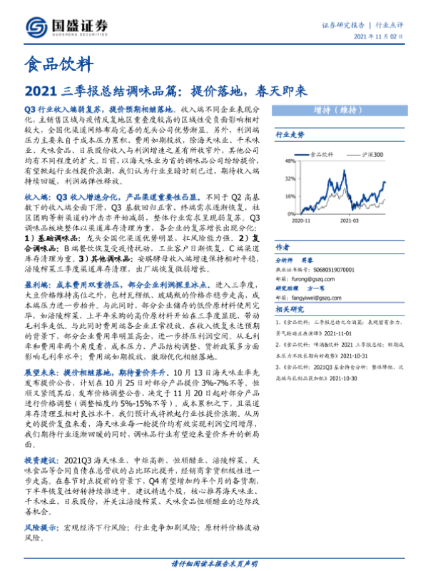 【国盛证券】【20211102】食品饮料2021三季报总结调味品篇:提价落地,春天即来-9页