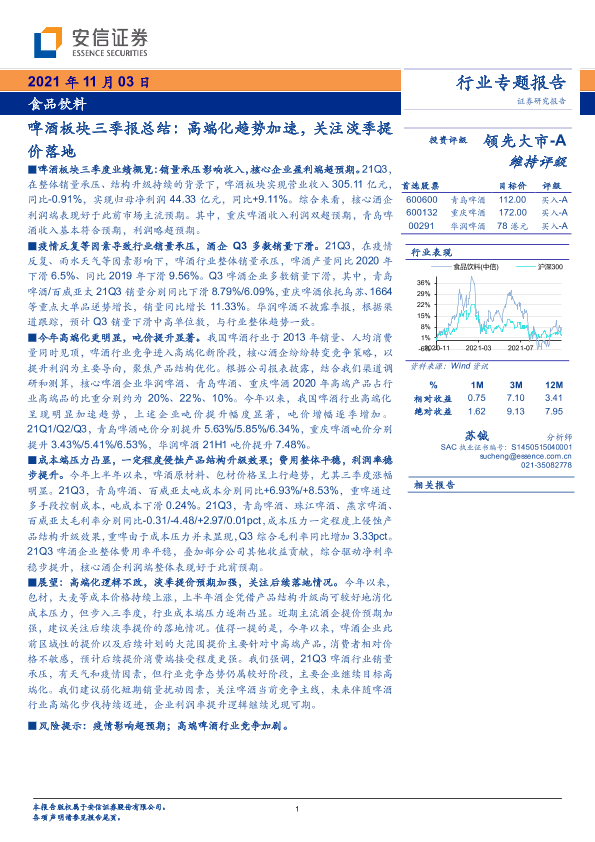 【安信证券】【20211103】啤酒板块三季报总结:高端化趋势加速,关注淡季提价落地-12页