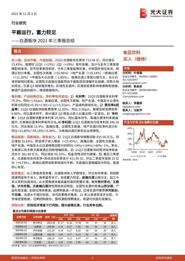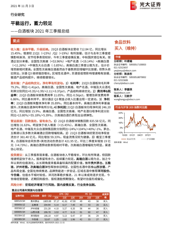 【光大证券】【20211103】白酒板块2021年三季报总结:平稳运行,蓄力较足-15页