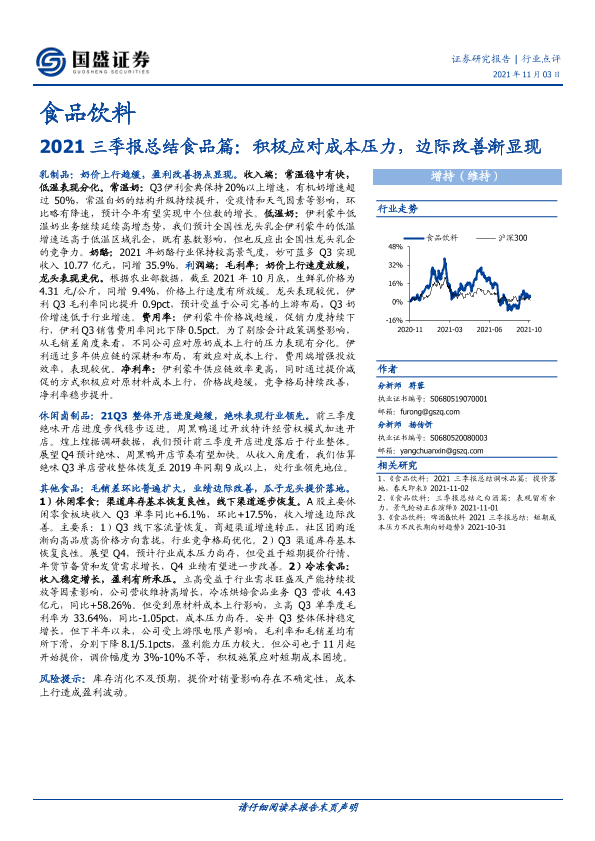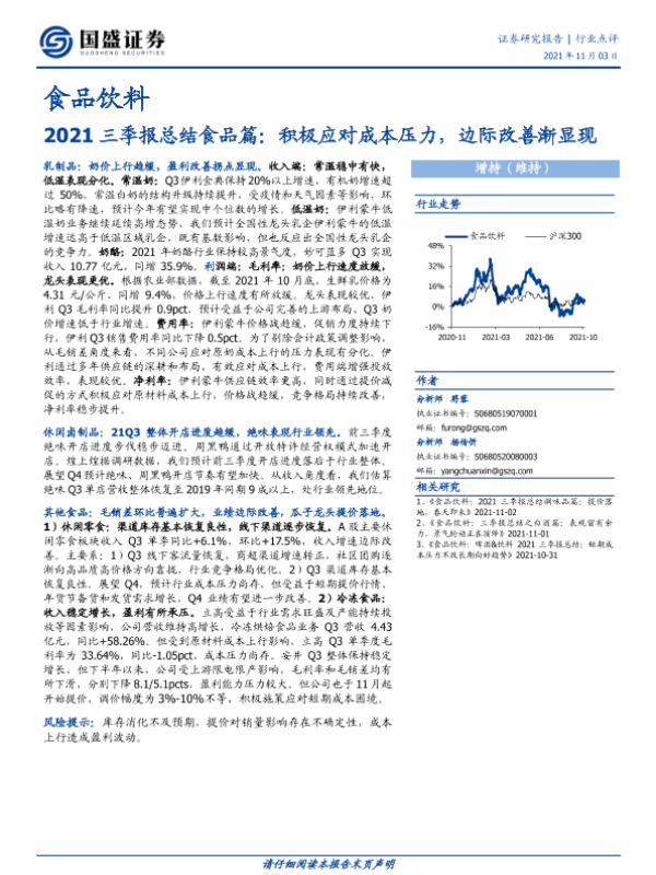 【国盛证券】【20211103】2021三季报总结食品篇:积极应对成本压力,边际改善渐显现-12页