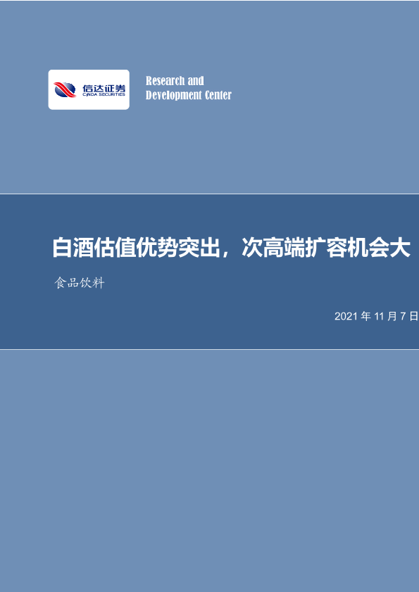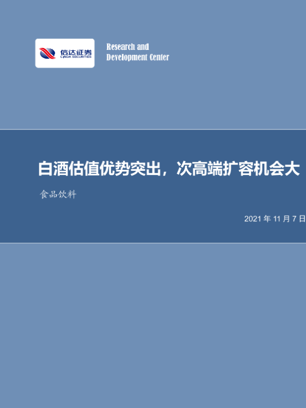 【信达证券】【20211107】20211107-信达证券-食品饮料:白酒估值优势突出,次高端扩容机会大-9页