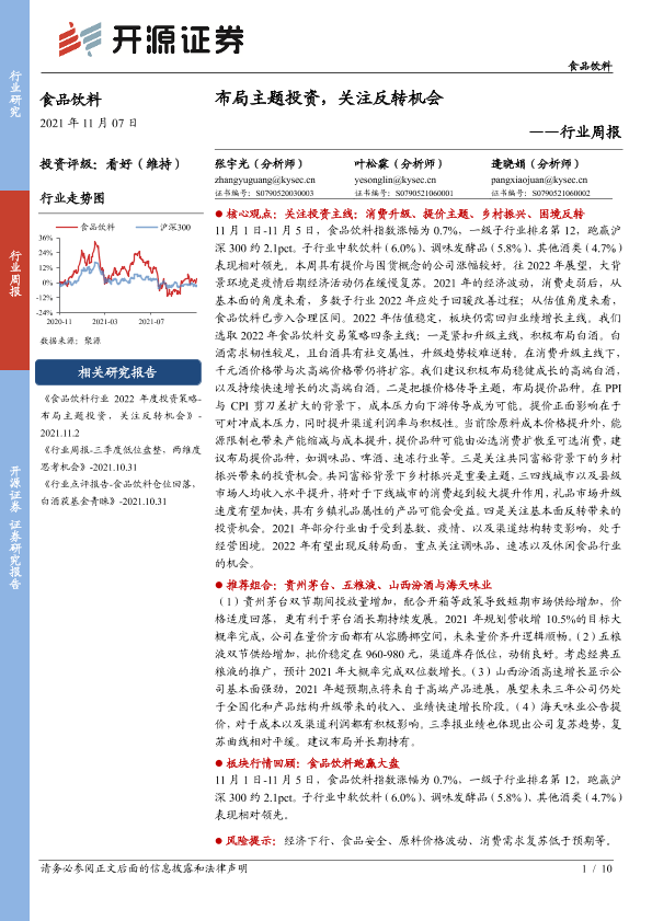 【开源证券】【20211107】食品饮料行业周报:布局主题投资,关注反转机会-10页