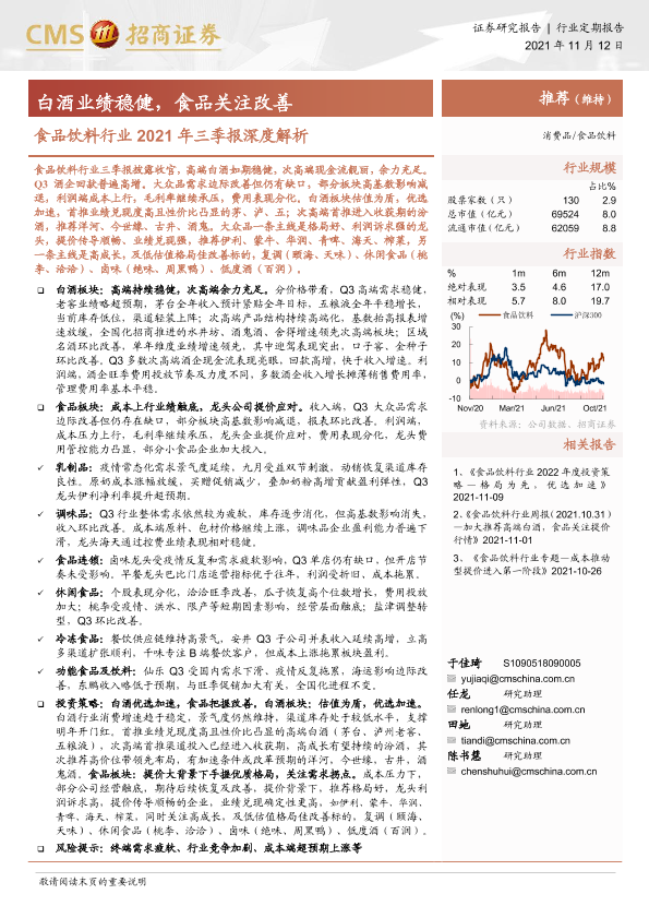三季报分析 成本压力 提价应对 白酒业绩 食品饮料