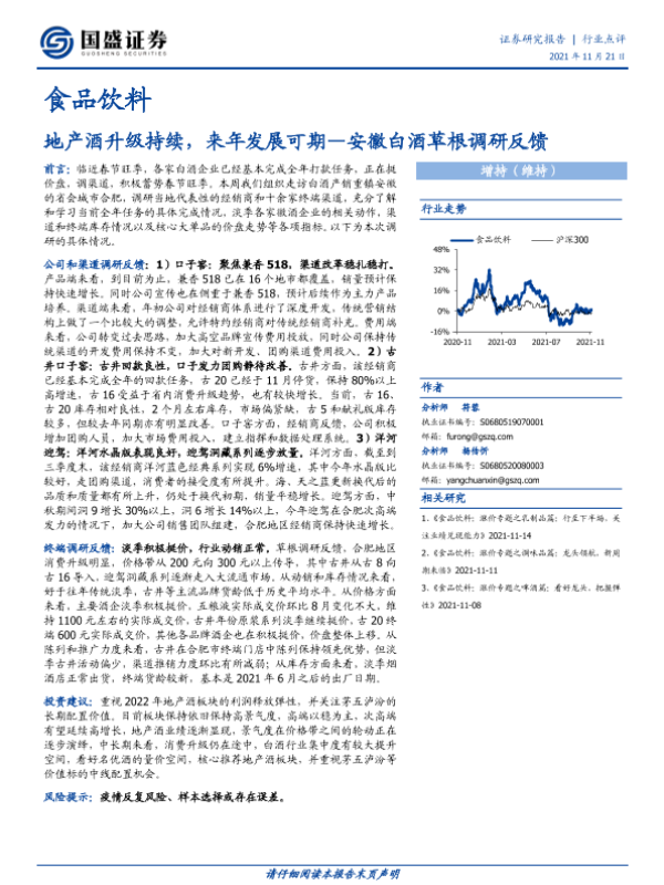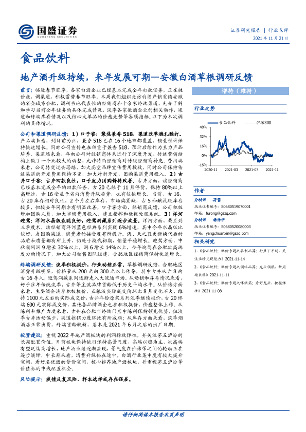【国盛证券】【20211121】食品饮料行业点评:地产酒升级持续,来年发展可期—安徽白酒草根调研反馈-8页