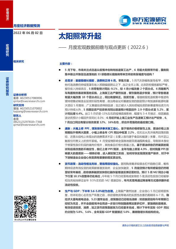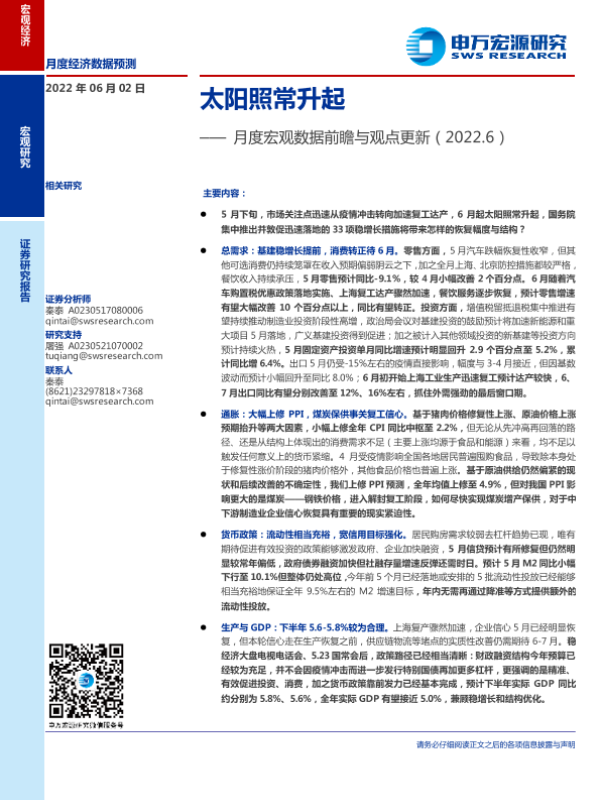 【申万宏源】【20220602】月度宏观数据前瞻与观点更新:太阳照常升起-16页