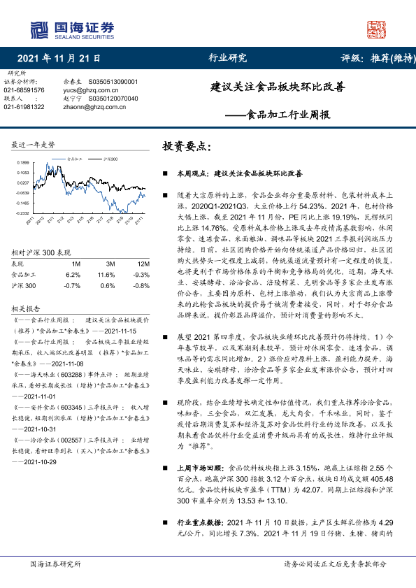 【国海证券】【20211121】20211121-国海证券-食品加工行业周报:建议关注食品板块环比改善-15页