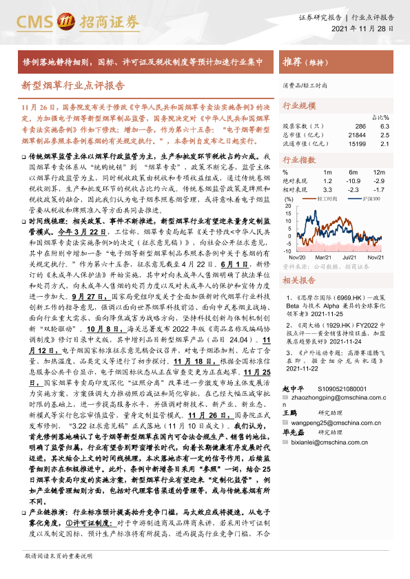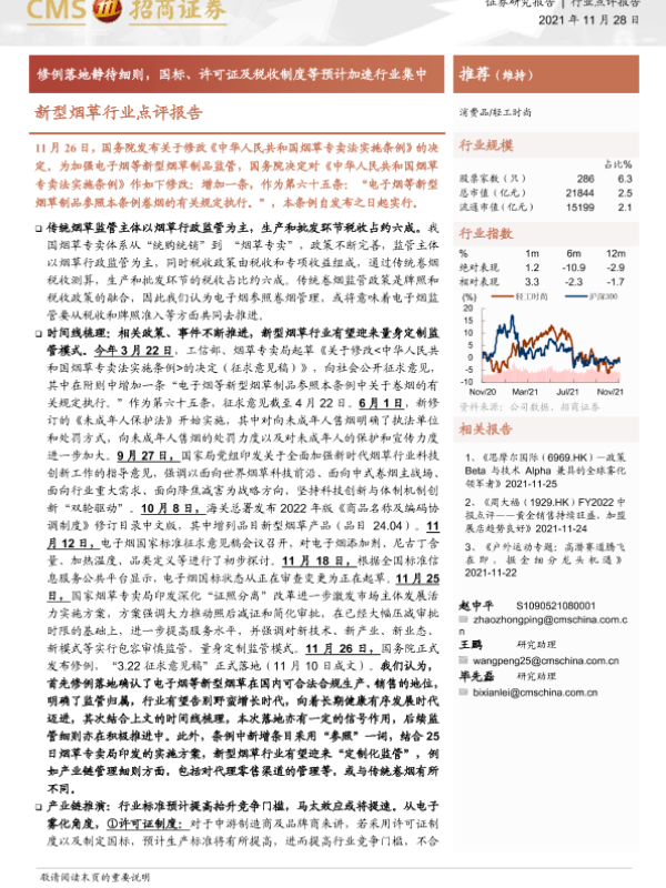 【海通证券】【20211128】新型烟草行业点评报告:修例落地静待细则,国标、许可证及税收制度等预计加速行业集中-6页