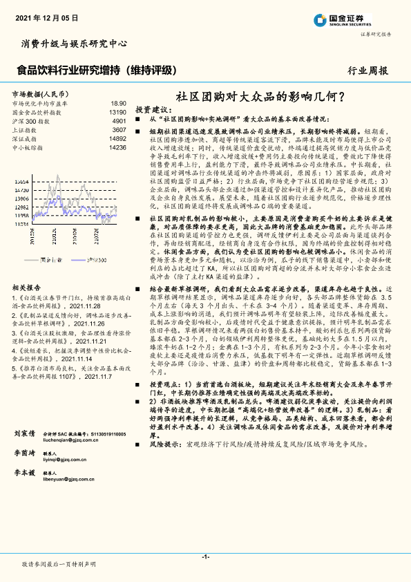 【国金证券】【20211205】食品饮料行业周报:社区团购对大众品的影响几何?-15页