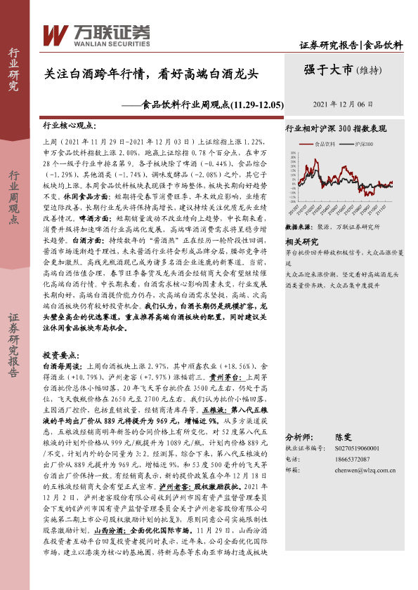 【万联证券】【20211206】20211206-万联证券-食品饮料行业周观点:关注白酒跨年行情,看好高端白酒龙头-12页