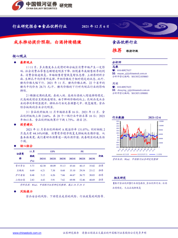 【银河证券】【20211206】20211206-中国银河-食品饮料行业:成本推动提价预期,白酒持续稳健-32页
