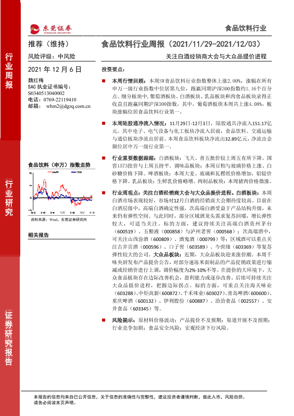 【东莞证券】【20211206】20211206-东莞证券-食品饮料行业周报:关注白酒经销商大会与大众品提价进程-13页