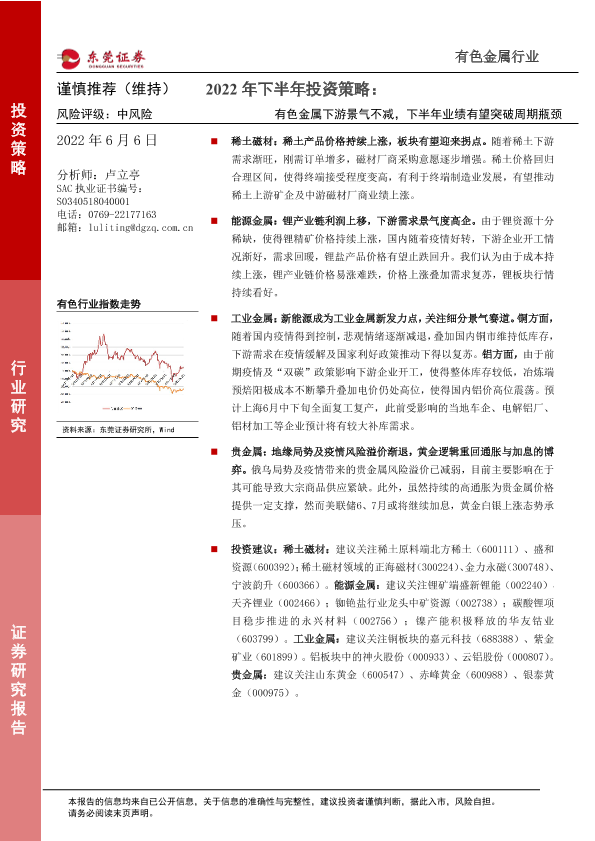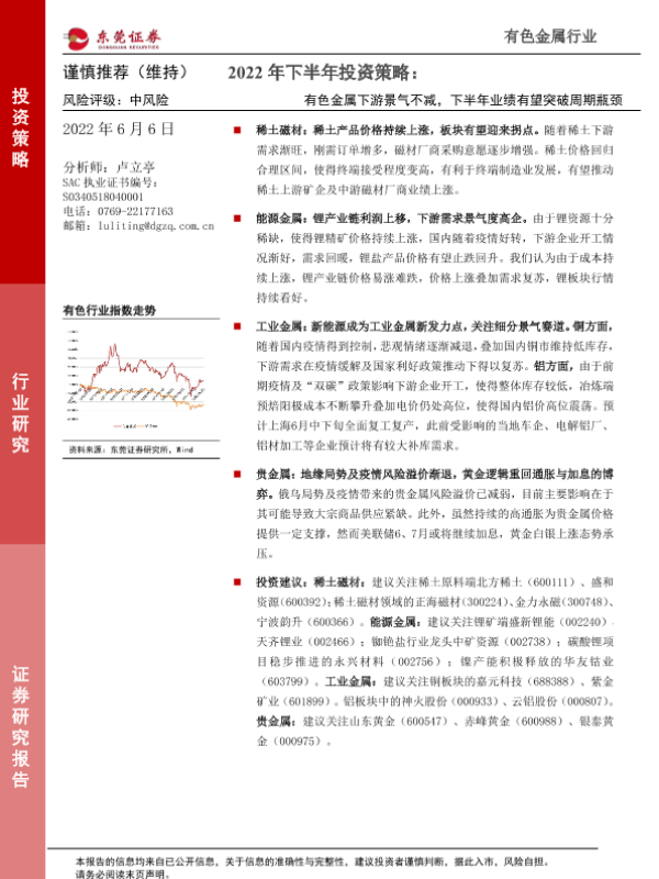 【东莞证券】【20220606】有色金属行业2022年下半年投资策略:有色金属下游景气不减,下半年业绩有望突破周期瓶颈-25页