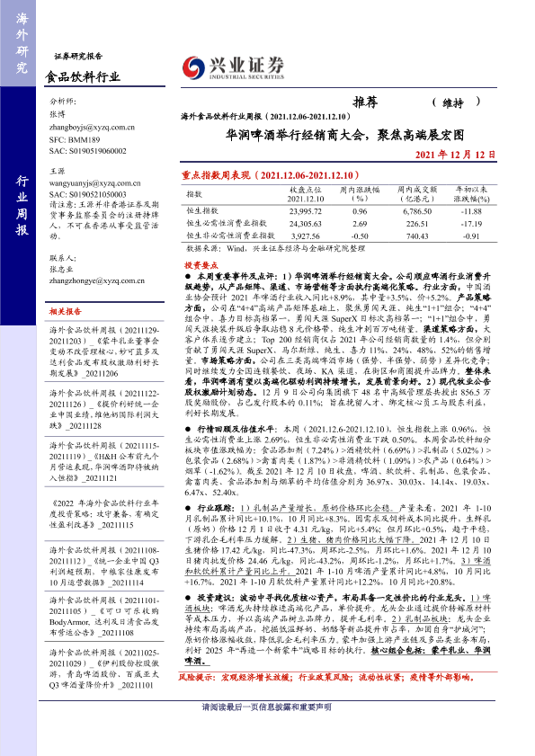 【兴业证券】【20211212】海外食品饮料行业周报(2021.12.06-2021.12.10):华润啤酒举行经销商大会,聚焦高端展宏图-10页