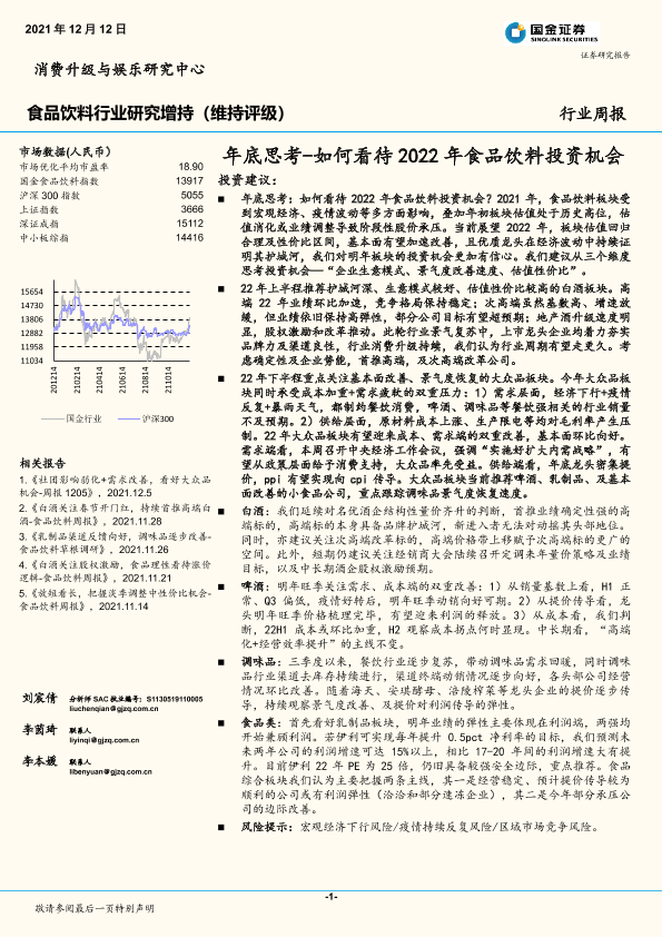 【国金证券】【20211212】20211212-国金证券-食品饮料行业周报:年底思考-如何看待2022年食品饮料投资机会-20页