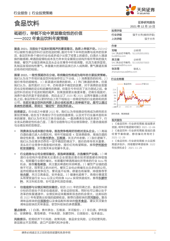 【天风证券】【20211210】2022年食品饮料年度策略:砥砺行,举棋不定中更显稳定性的价值-56页