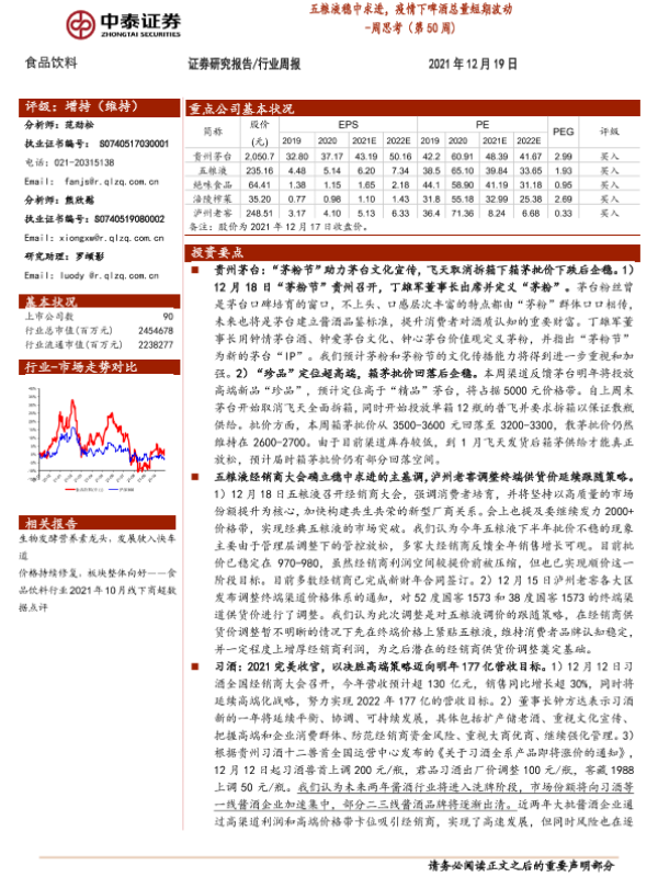 【中泰证券】【20211219】五粮液稳中求进,疫情下啤酒总量短期波动 -周思考(第50周)-22页