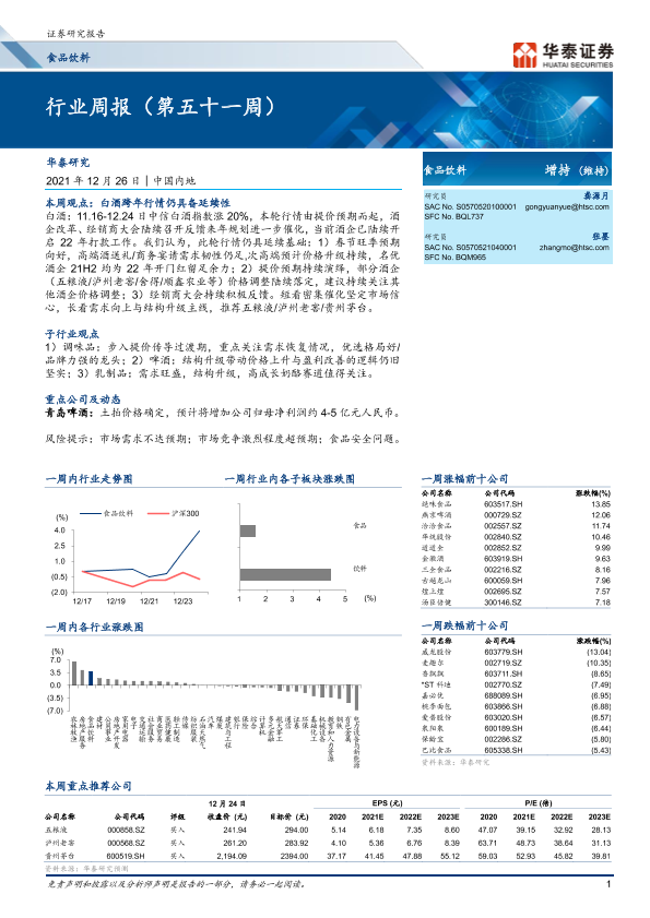 【华泰证券】【20211226】20211226-华泰证券-食品饮料行业周报(第五十一周)-13页