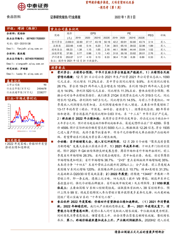 【中泰证券】【20220102】重啤提价稳步推进,天味有望环比改善 - 周思考(第1周)-10页