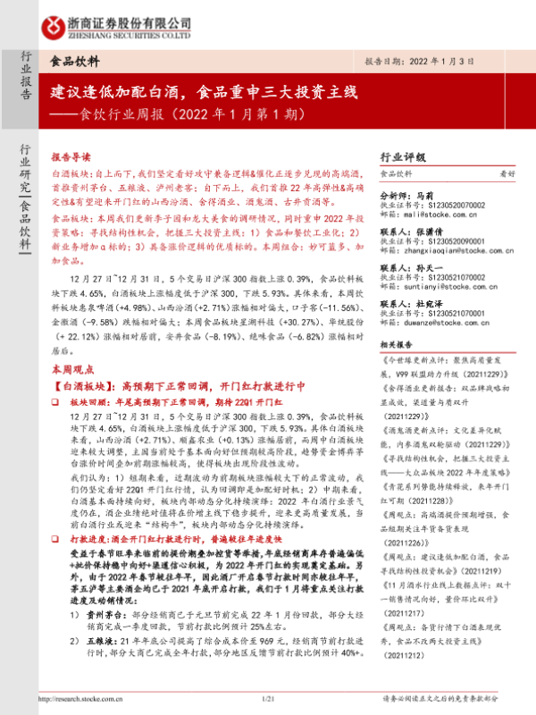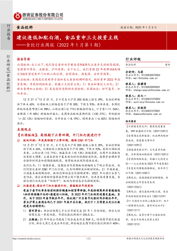 【浙商证券】【20220103】食饮行业周报(2022年1月第1期):建议逢低加配白酒,食品重申三大投资主线-21页